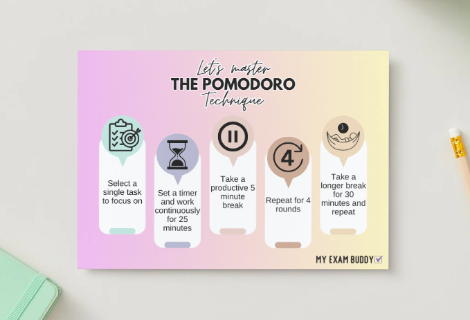 Our Pomodoro Planner helps learners stay focused and balanced by breaking study time into short, structured bursts followed by meaningful rest breaks. Using the Pomodoro technique, students can manage their workload, boost concentration, and reduce stress during revision or exam preparation.